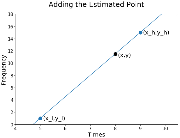 As I previously stated, we know linear interpolation is a form of a weighted average method. To show this I will manipulate the equation for the linear interpolation line into the weighted average form